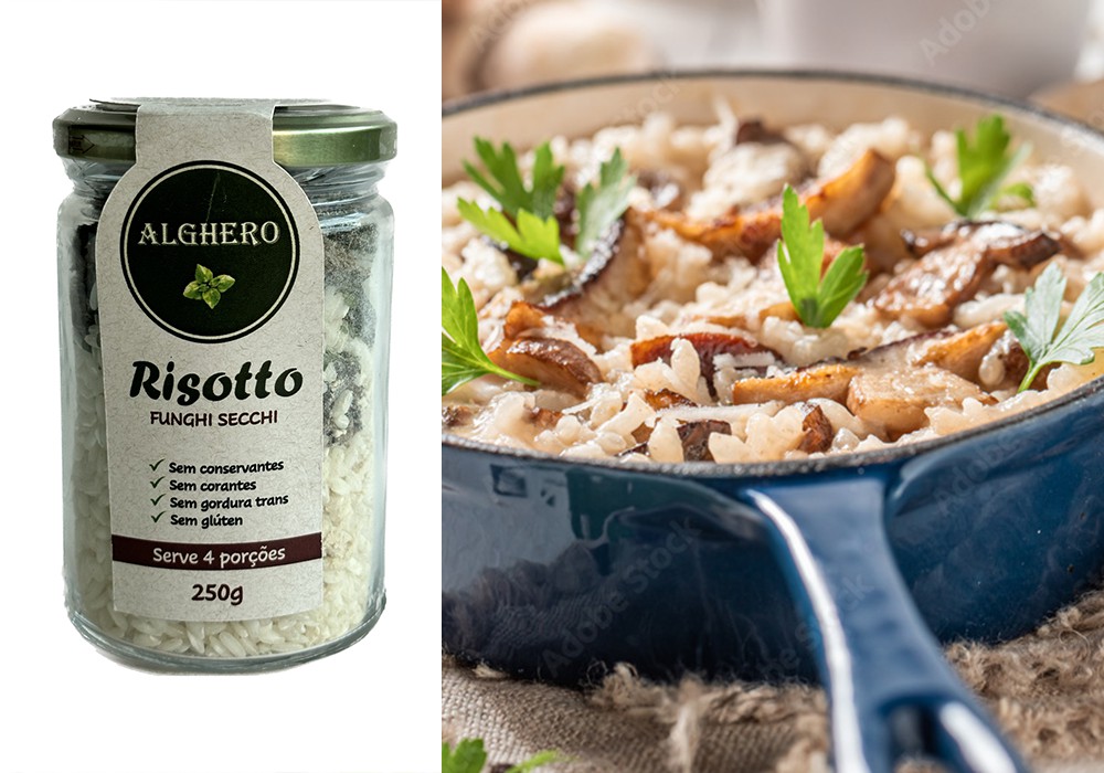 Risoto gourmet pronto para ser finalizado em casa com a familia e amigos. Basta adicionar água, manteiga ou azeite.